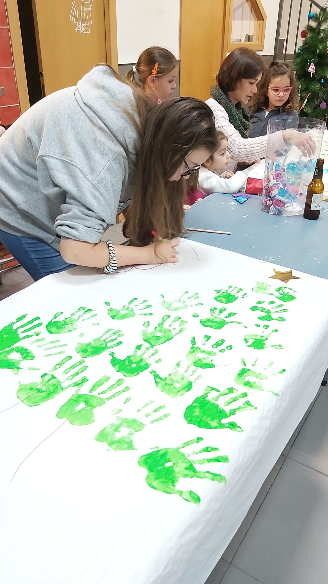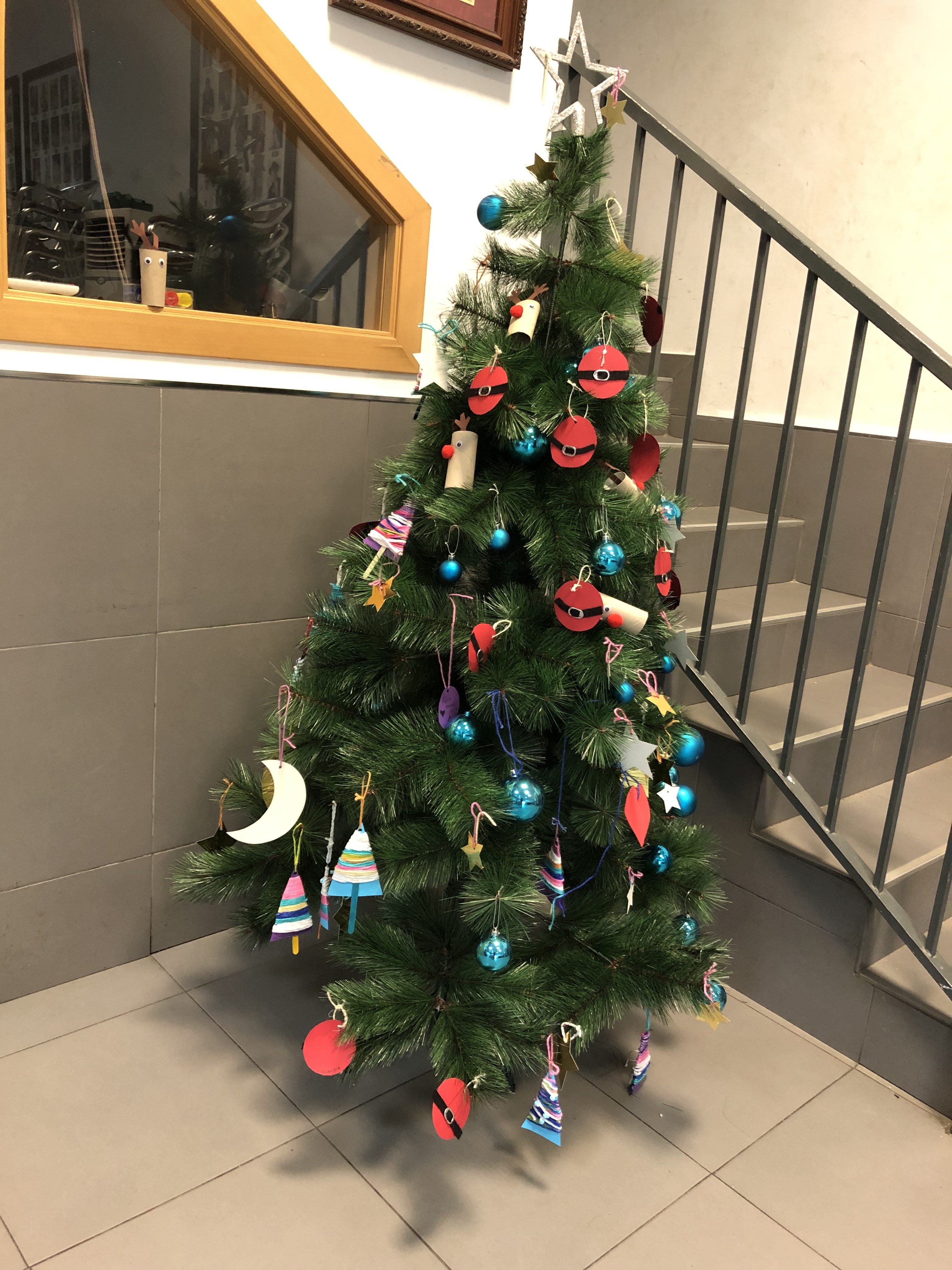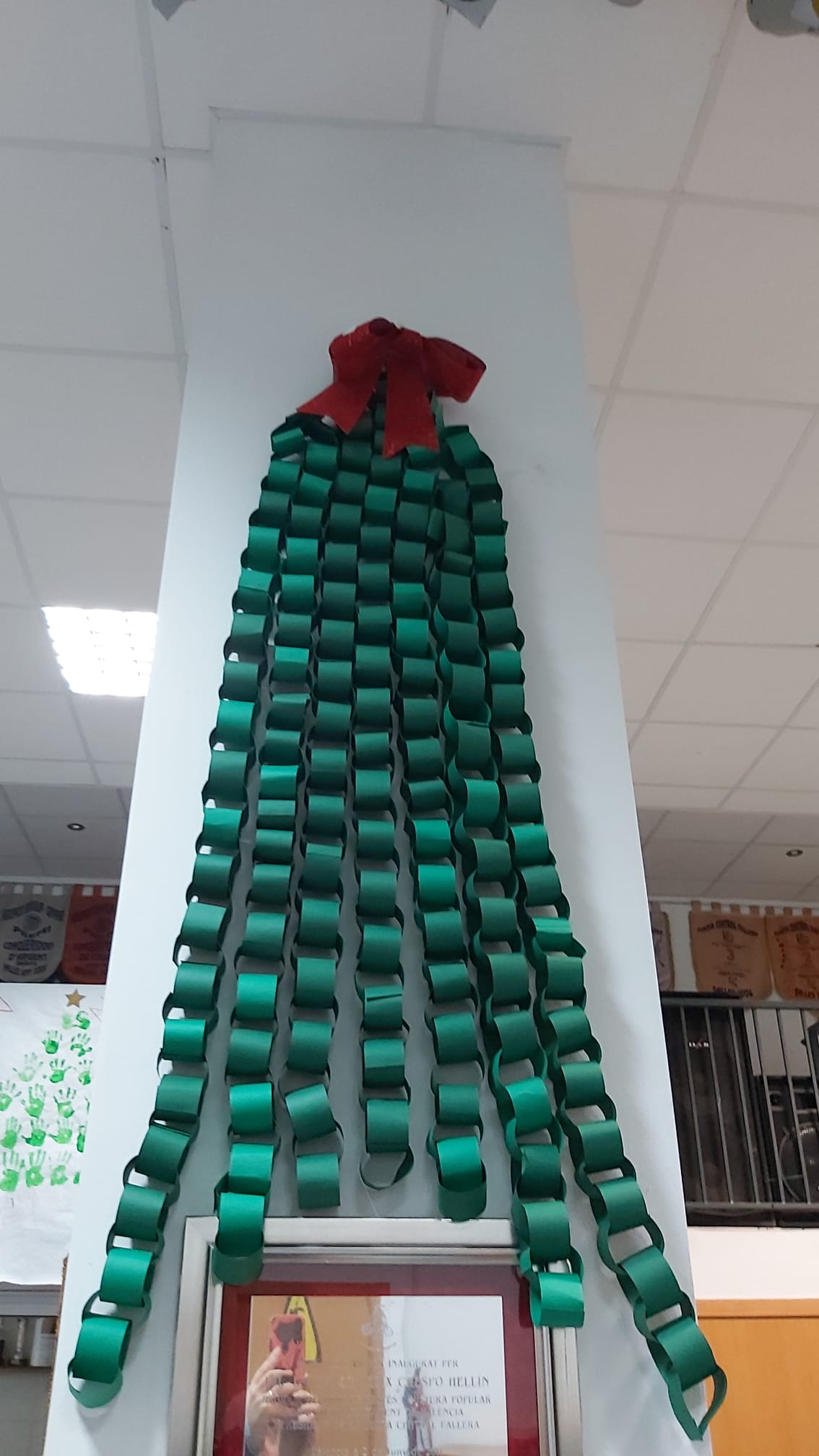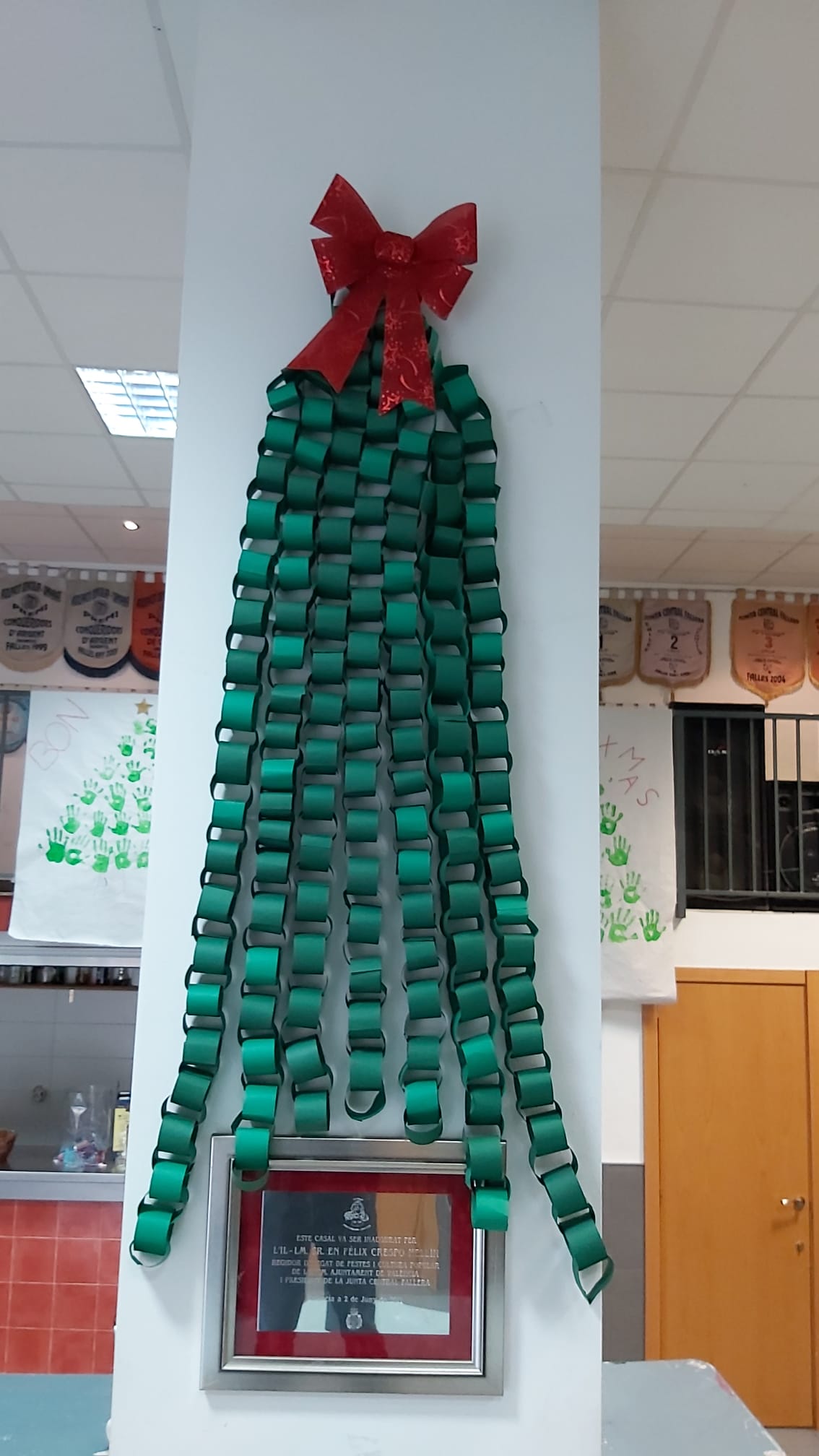 Les i els infantils de la Falla han fet este divendres 6 de desembre diverses manualitats per a poder decorar el nostre casal per Nadal. Per un costat han pintat, amb les seues mans, tres murals ben grans, que ja pengen de la barana del primer pis. També han muntat un arbre amb rens que han fet ells mateixos… I, d’altra banda, han volgut penjar de la columna central del casal un altre arbre de Nadal ben gran i original. I quasi tot amb materials reciclats!!
