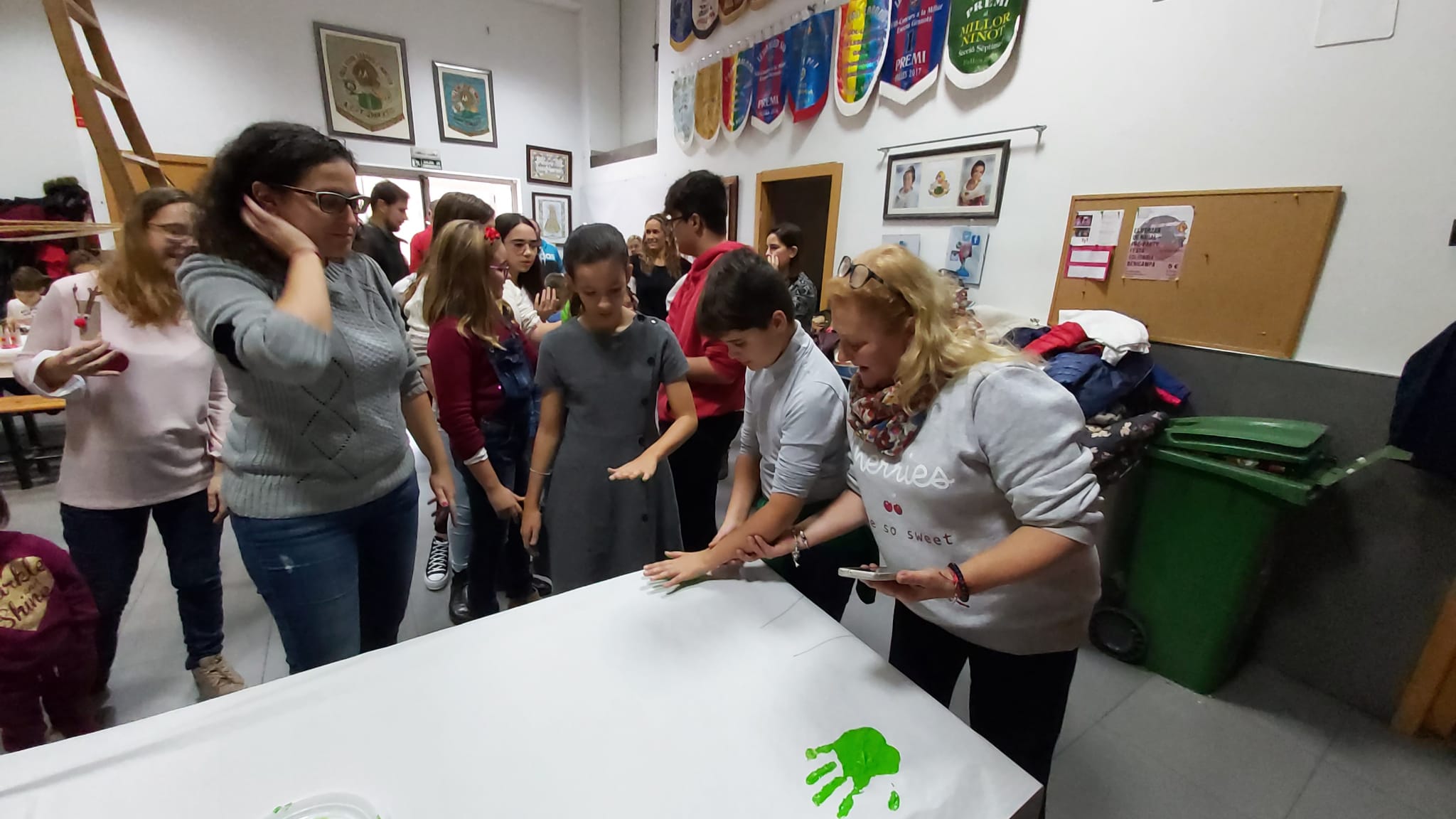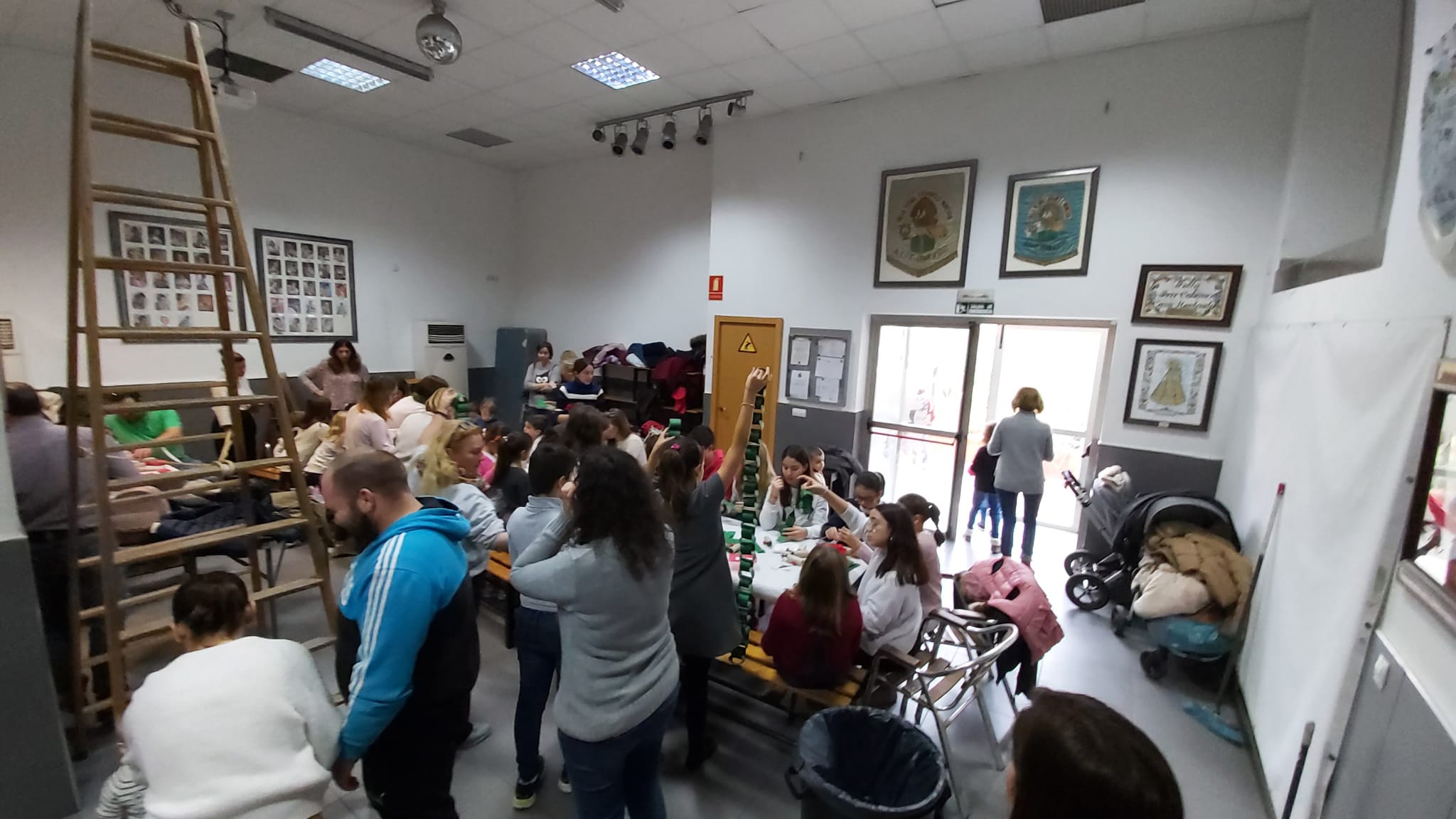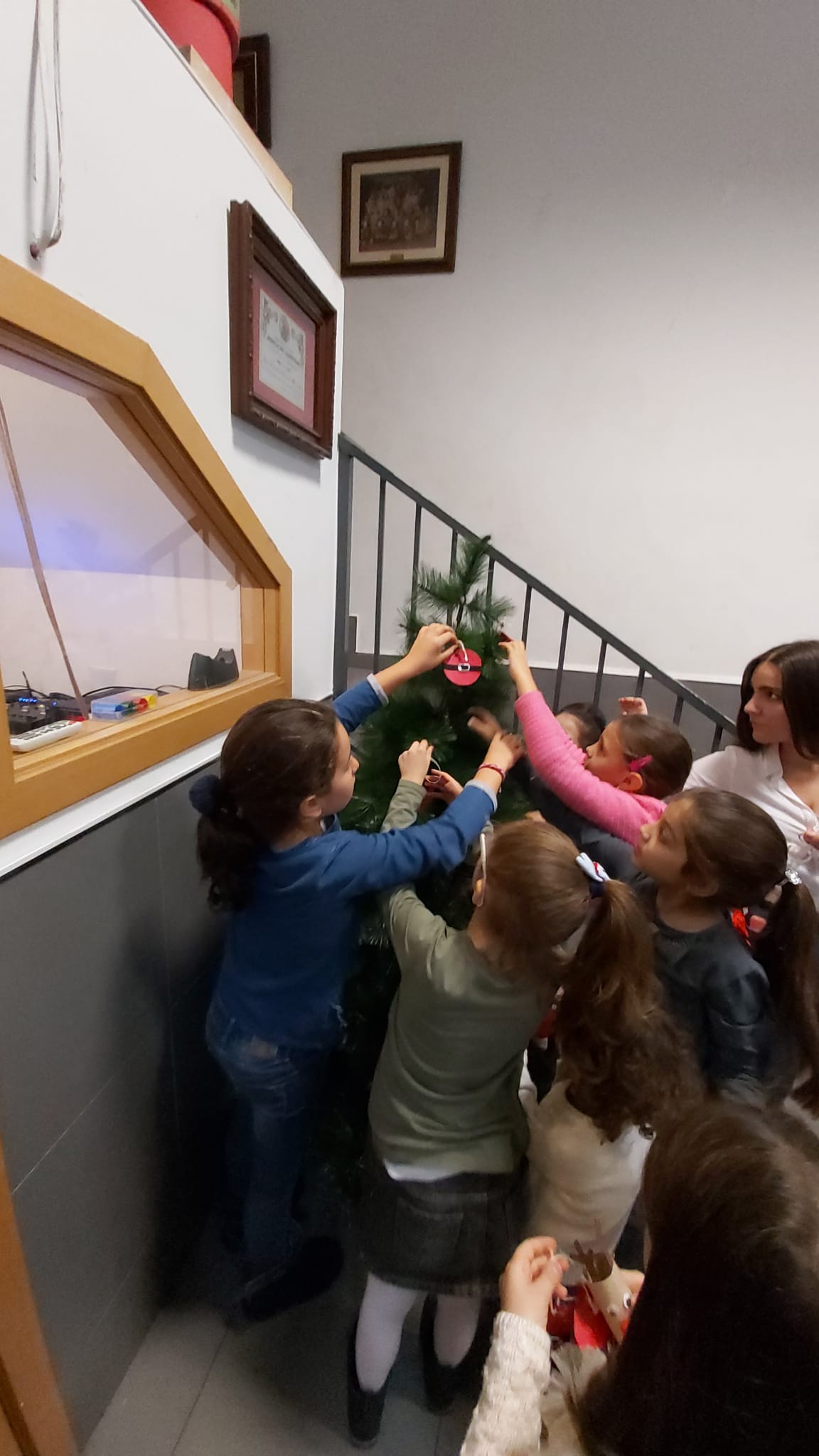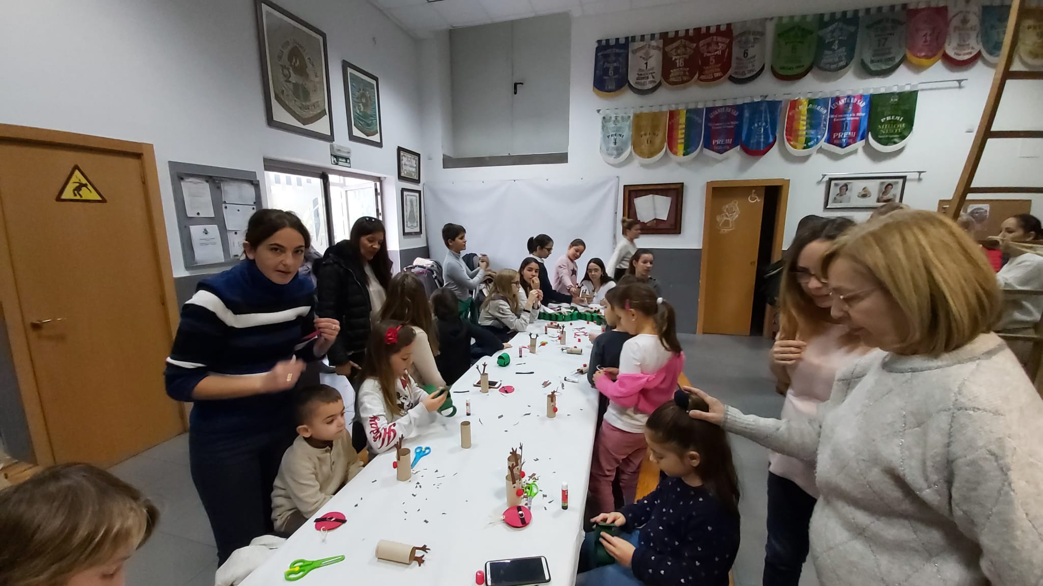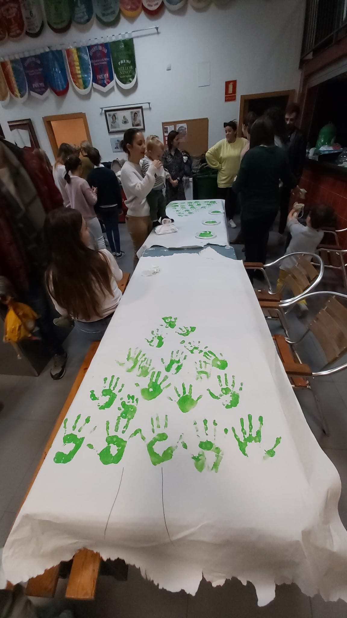 Les i els infantils de la Falla han fet este divendres 6 de desembre diverses manualitats per a poder decorar el nostre casal per Nadal. Per un costat han pintat, amb les seues mans, tres murals ben grans, que ja pengen de la barana del primer pis. També han muntat un arbre amb rens que han fet ells mateixos… I, d’altra banda, han volgut penjar de la columna central del casal un altre arbre de Nadal ben gran i original. I quasi tot amb materials reciclats!!