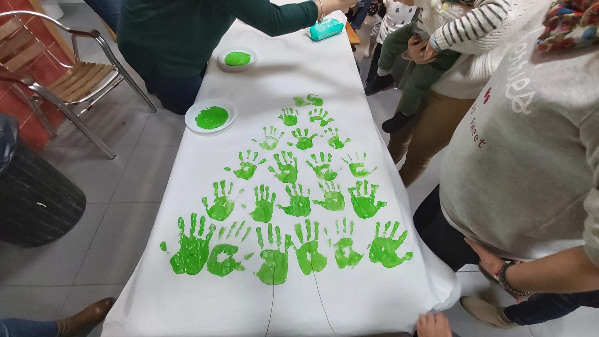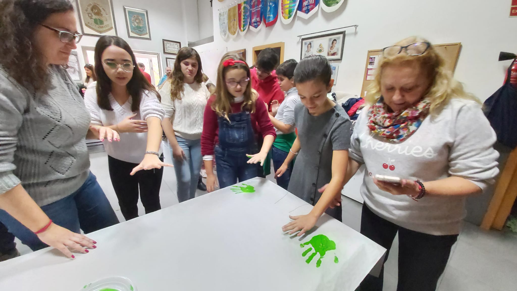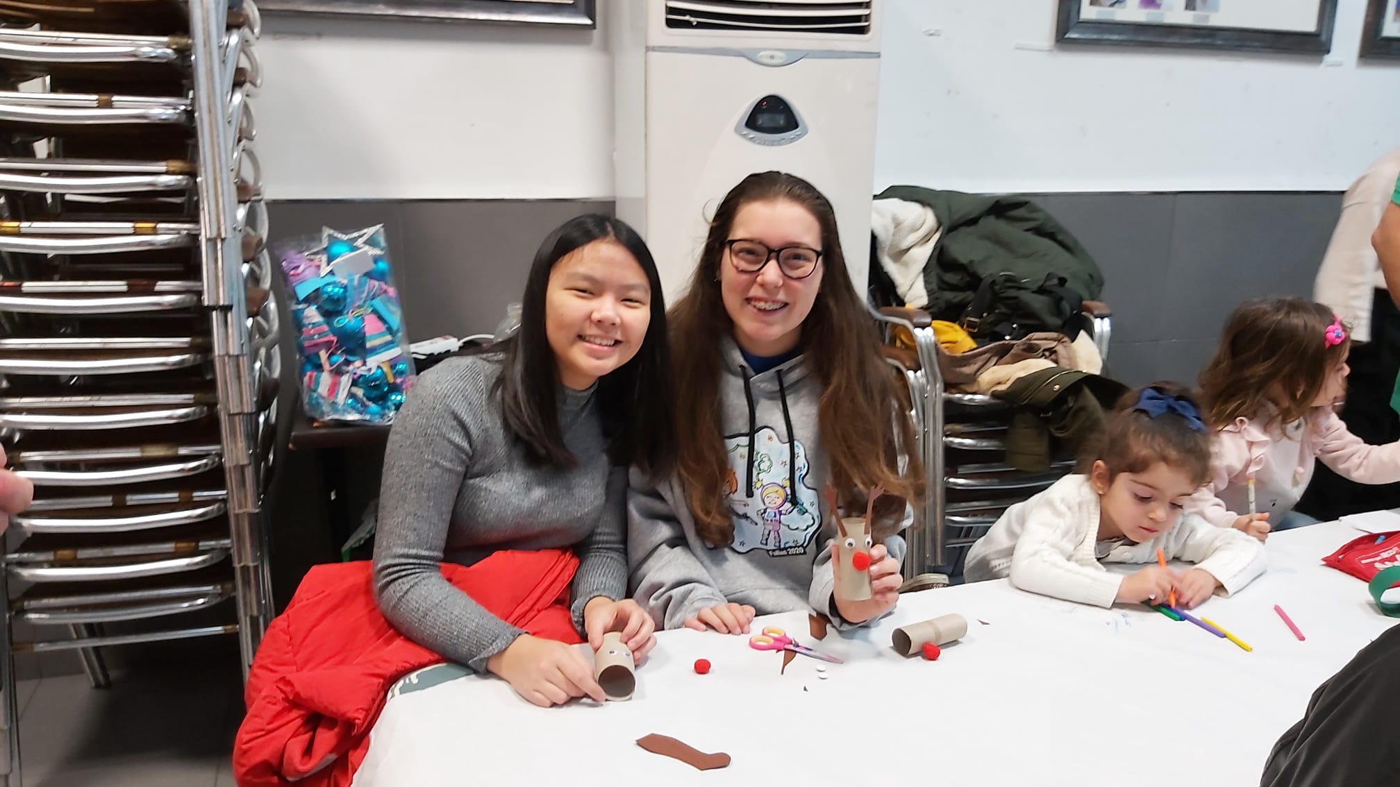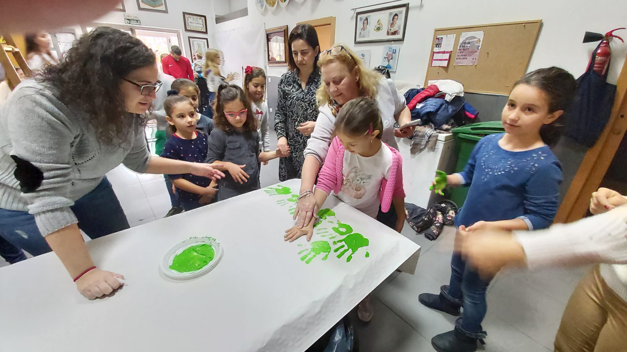Les i els infantils de la Falla han fet este divendres 6 de desembre diverses manualitats per a poder decorar el nostre casal per Nadal. Per un costat han pintat, amb les seues mans, tres murals ben grans, que ja pengen de la barana del primer pis. També han muntat un arbre amb rens que han fet ells mateixos… I, d’altra banda, han volgut penjar de la columna central del casal un altre arbre de Nadal ben gran i original. I quasi tot amb materials reciclats!!