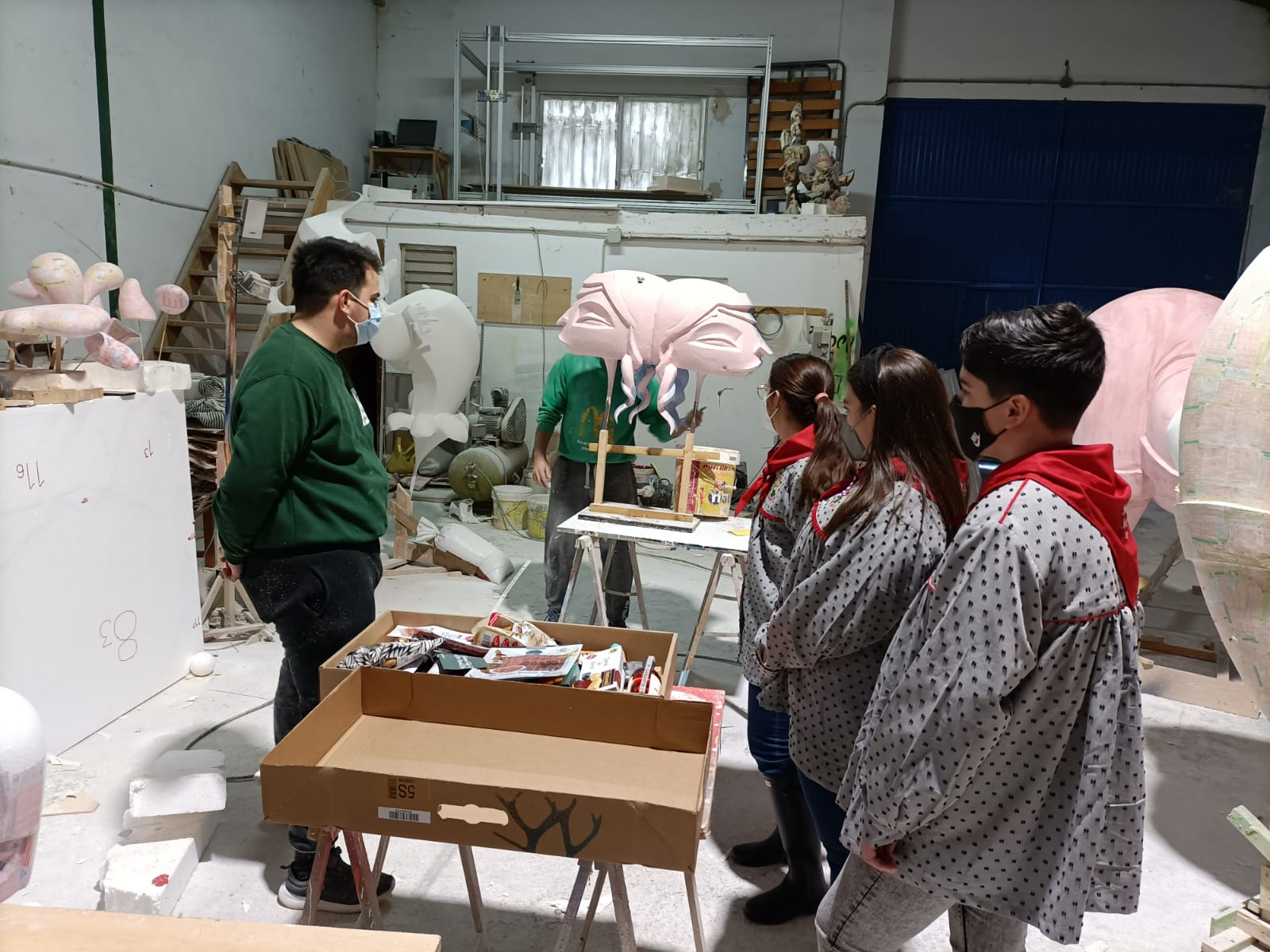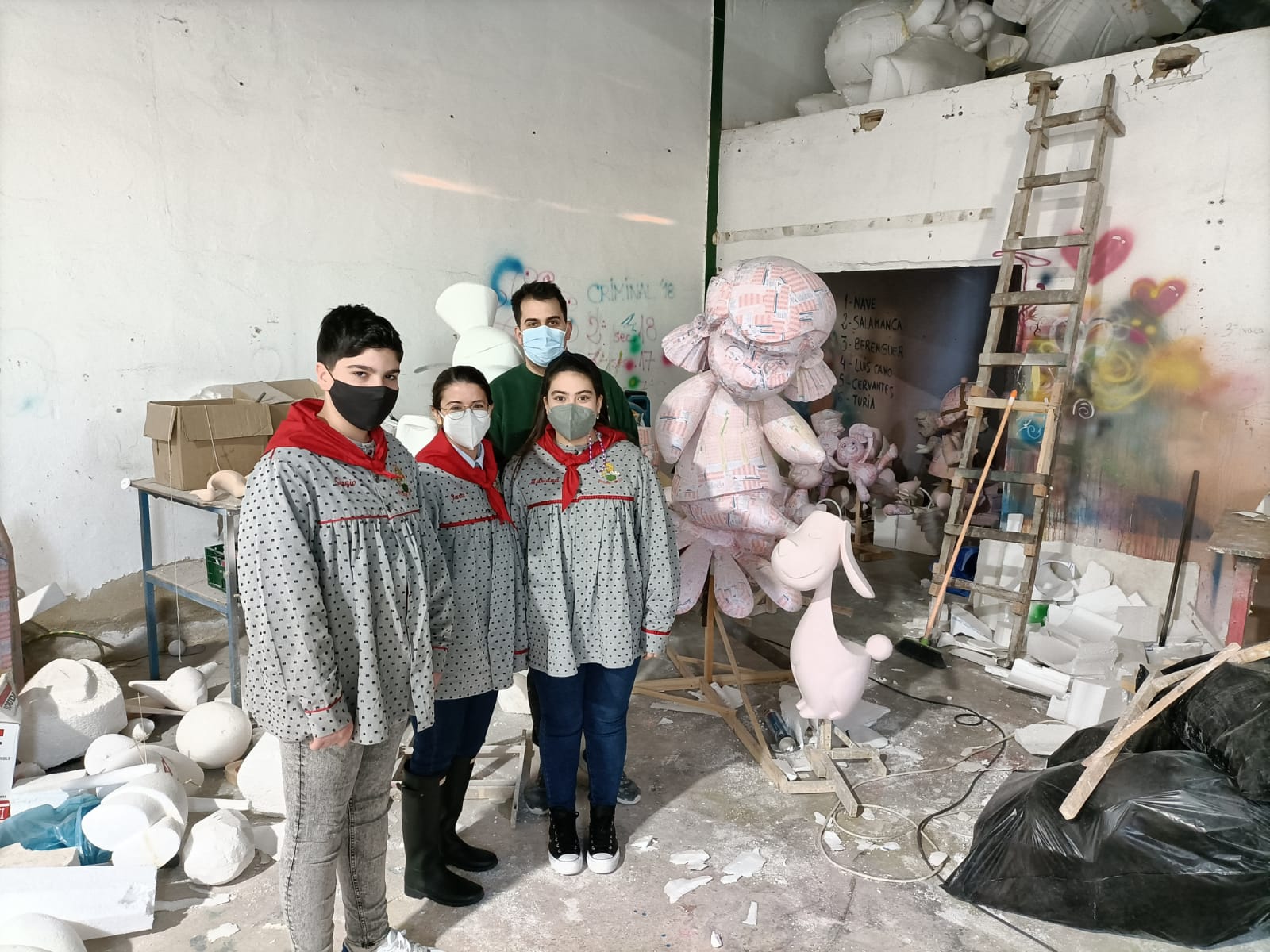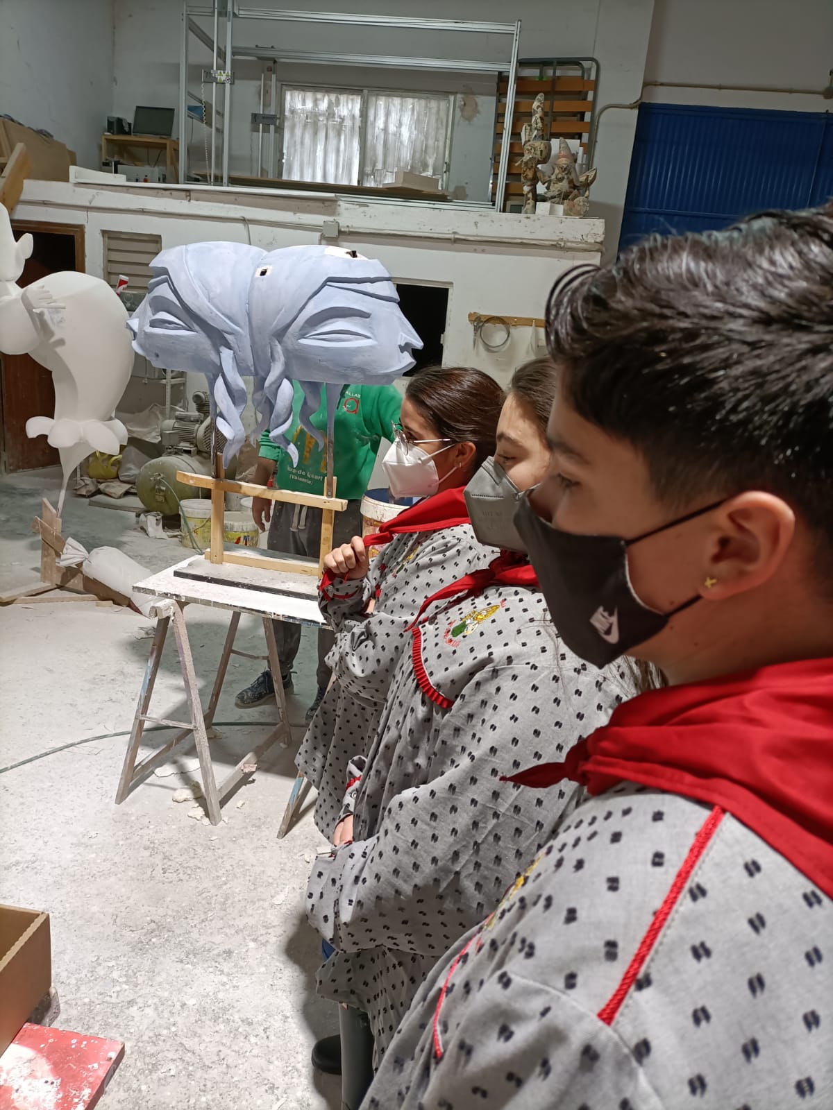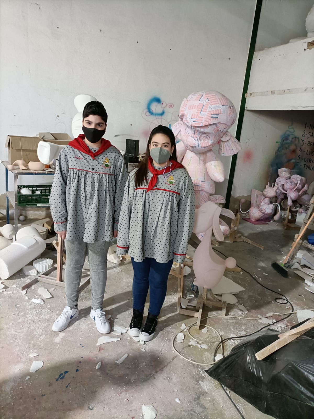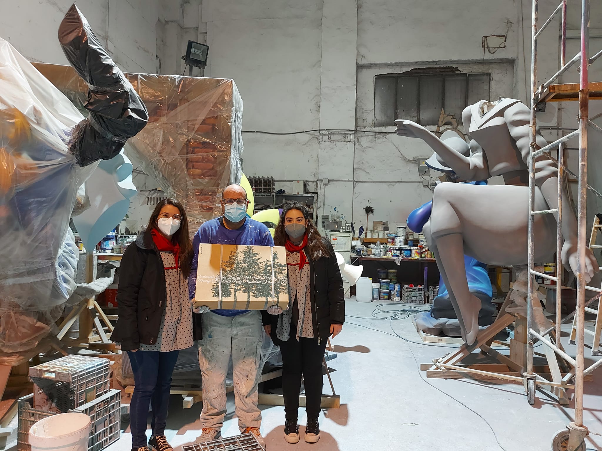 L’exercici avança, i bona prova és que, quan visitàrem quasi per sorpresa els nostres artistes fallers, vam poder comprovar que la seua feina està molt avançada, i que ja podem vore algunes figures i fins i tot els remats de les falles que vorem plantades al proper mes de març del 2022. La visita era especial, ja que els nostres representants volien traslladar l’agraïment de la Falla a Santi i a Juane, i fer-los un xicotet detall.
