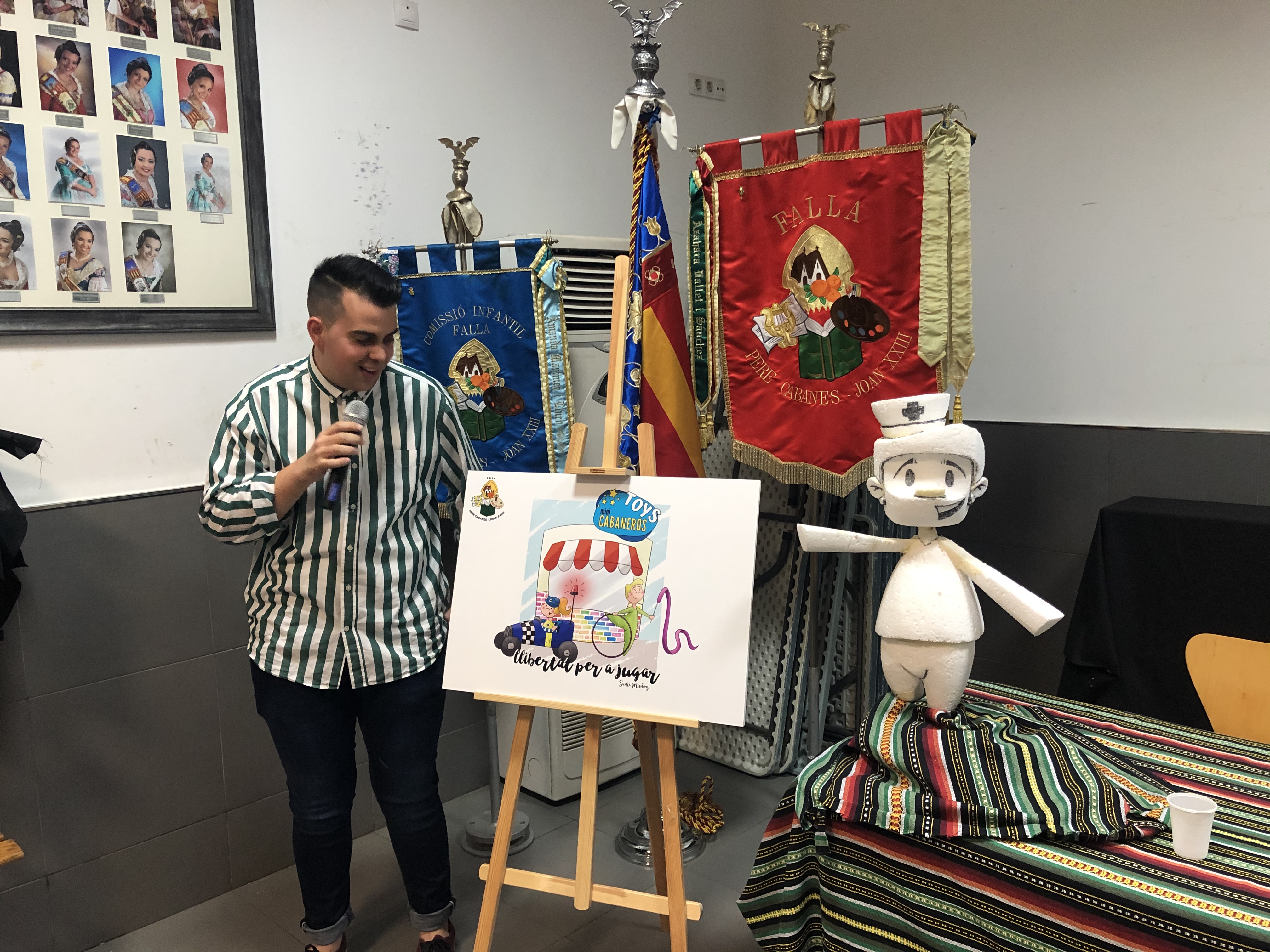 Divendres 8 de novembre vam presentar els nostres esbossos de les falles 2020. Santi Muñoz, jove artista faller, s’estrena a nostra demarcació amb ‘Llibertat per a jugar’, i fins al casal portà un dels ninots que podrem vore a la seua falla, a la qual xiquets i xiquetes podran jugar als seus jocs favorits, sense pensar en rosa, en blau o en força o ball. Per la seua part, Juane Cortell, que també és nou per a la falla, encara que la seua trajectòria és molt més dilatada, ens plantarà ‘#Ubicats’, una autèntica sàtira de les xarxes socials i l’ús que fem dels telèfons mòbils i internet.