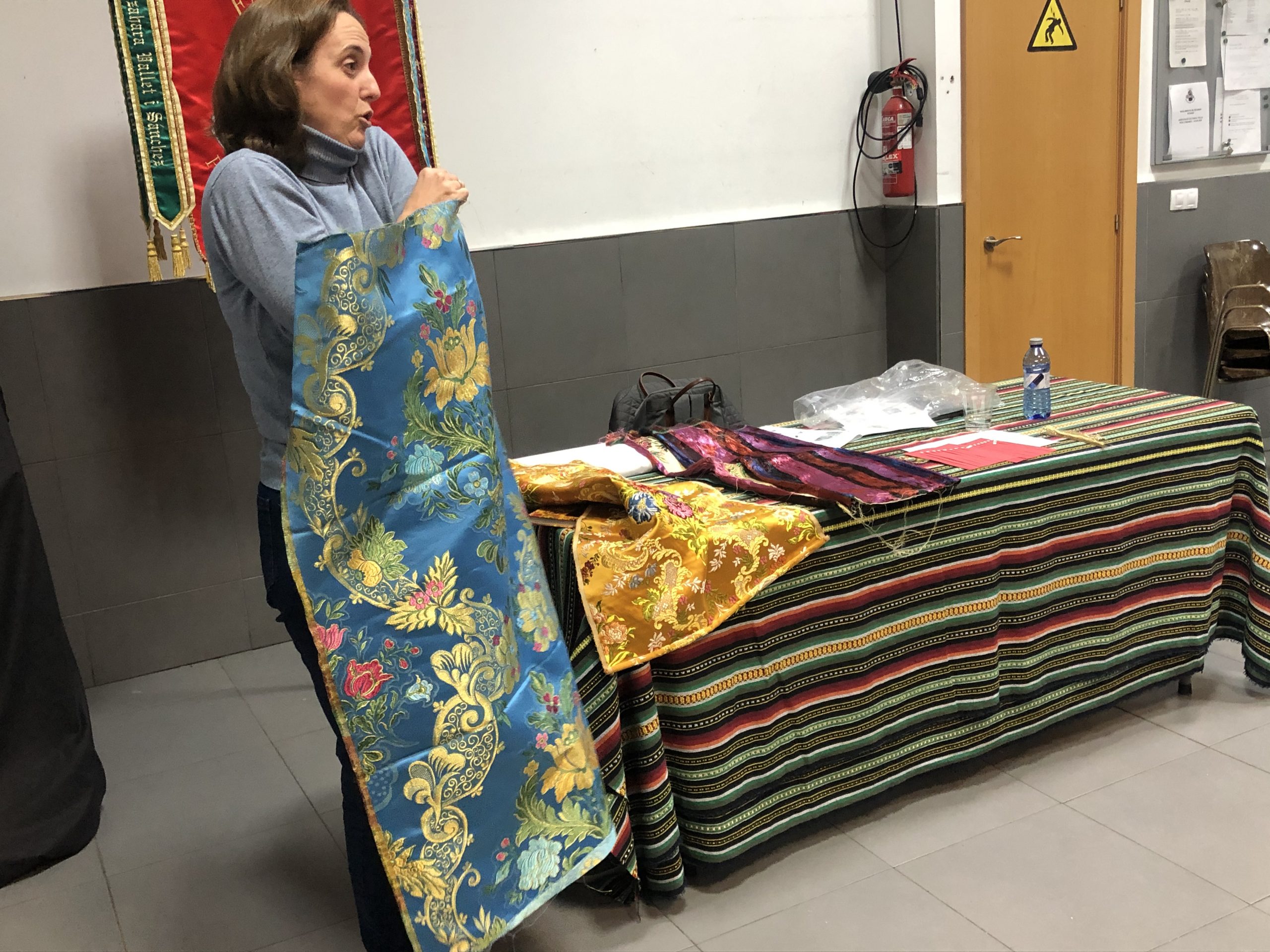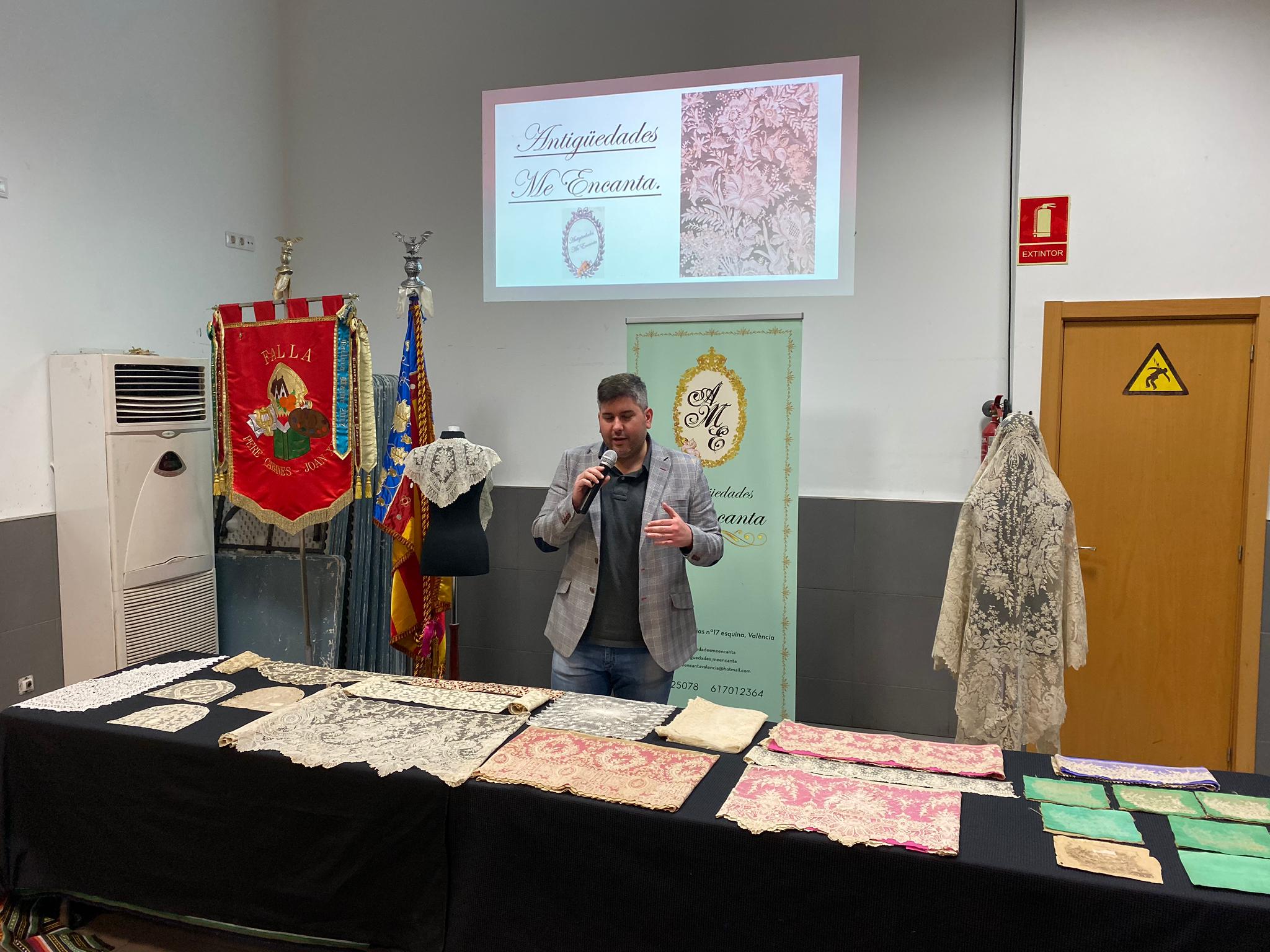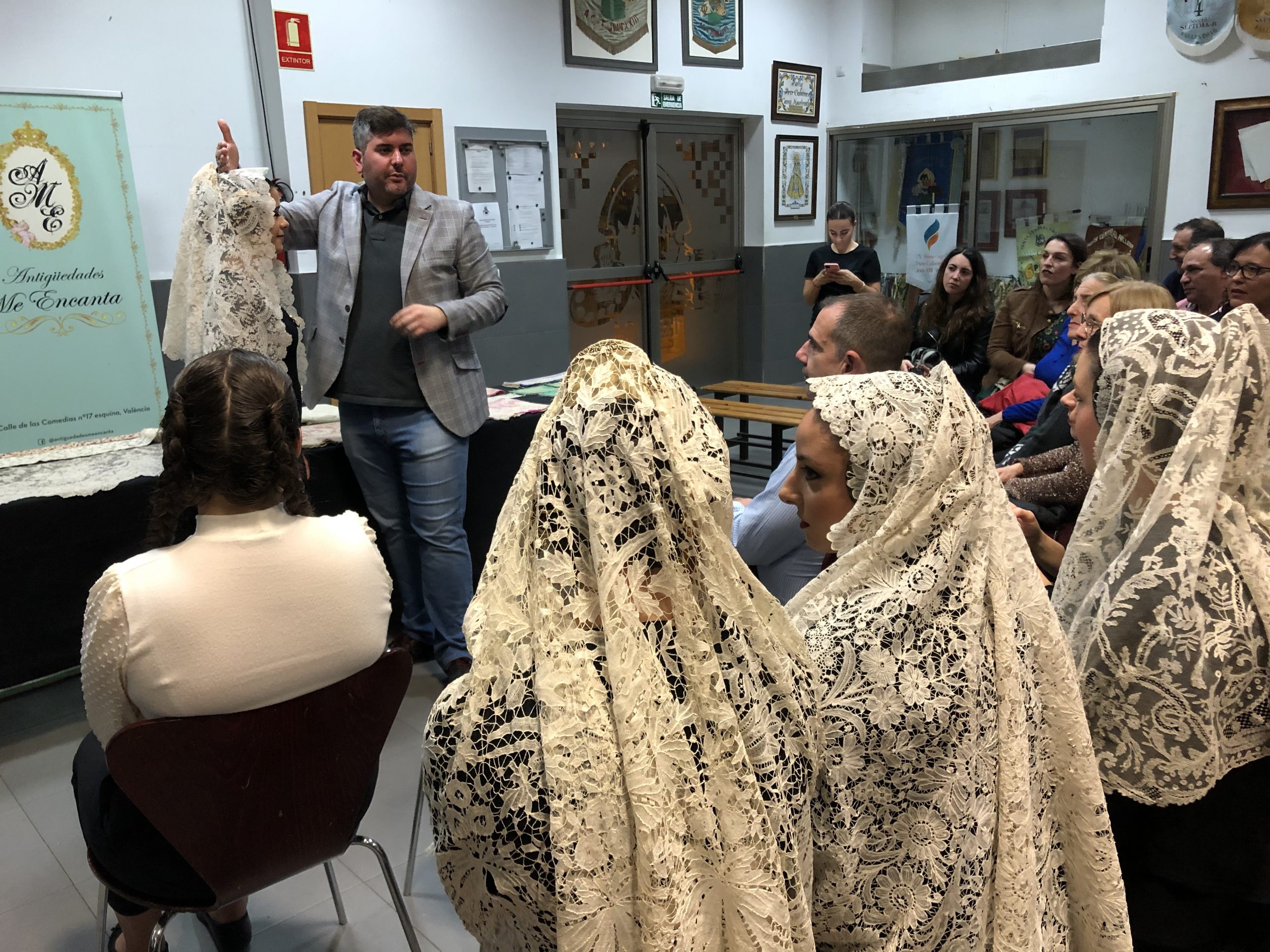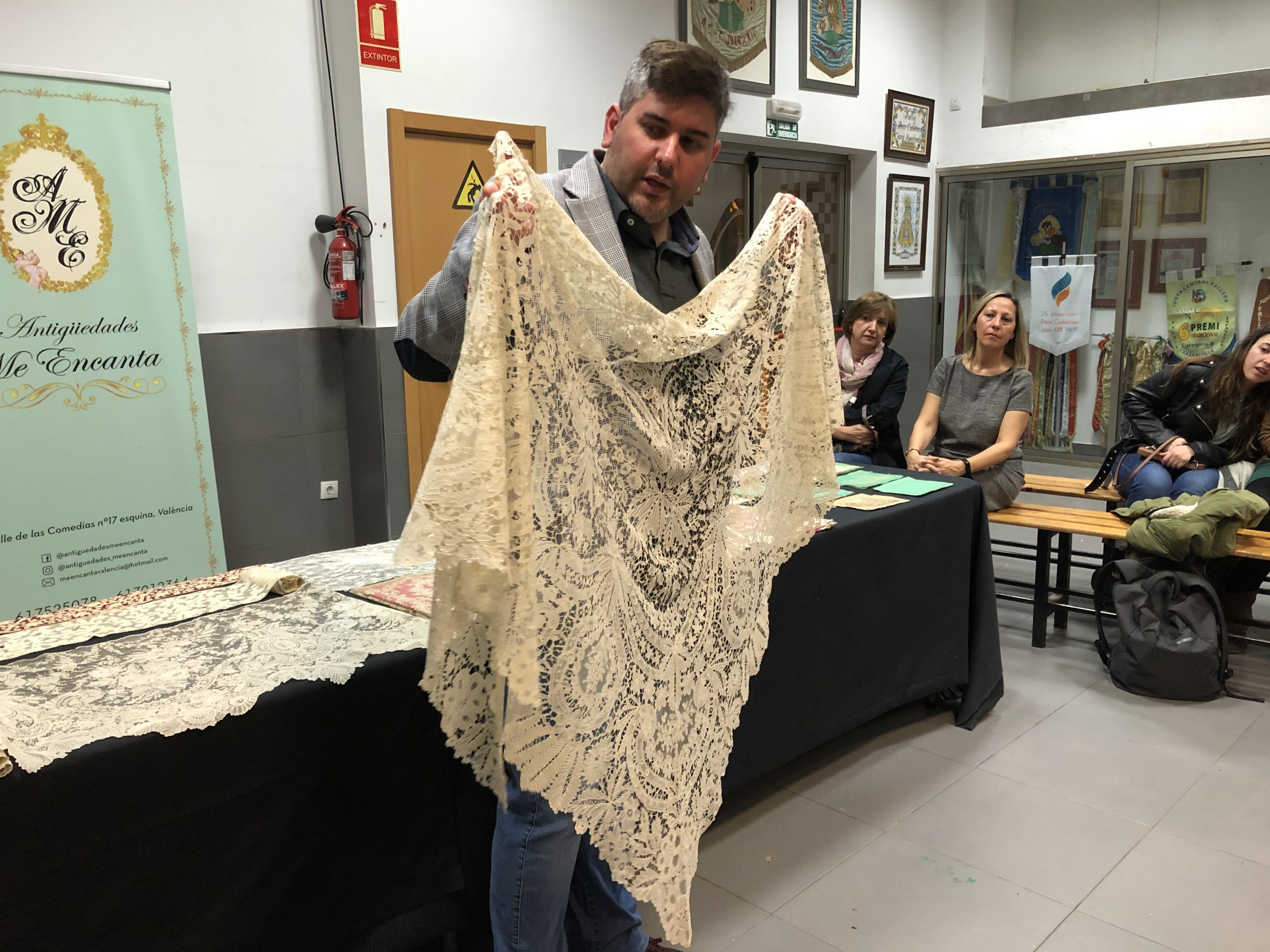 Finalment, 29 de novembre terminaren estes Jornades Culturals amb Antigüedades Me encanta, que ens explicà com vestir la mantellina de fallera, a més de parlar-nos de la tradició d’esta part fonamental del tratge de valenciana i fallera, que arriba de ben antic, i que hui encara conserva molta tradició i artesania manual.