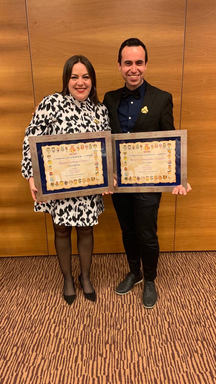 Els nostres presidents, Roberto i Raquel, reberen també en este assenyalat dia el quadre que els acredita com a presidents de la Falla Pere Cabanes – Joan XXIII pels exercicis 2020-2021 i 2021-2022. Gràcies pel vostre esforç!